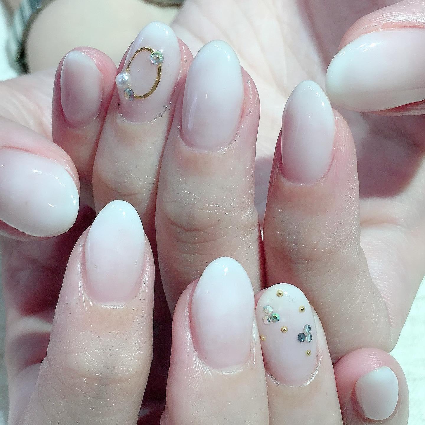 清楚系ホワイトグラデーション💅🏻桜新町ネイルサロンpeep-PEEP