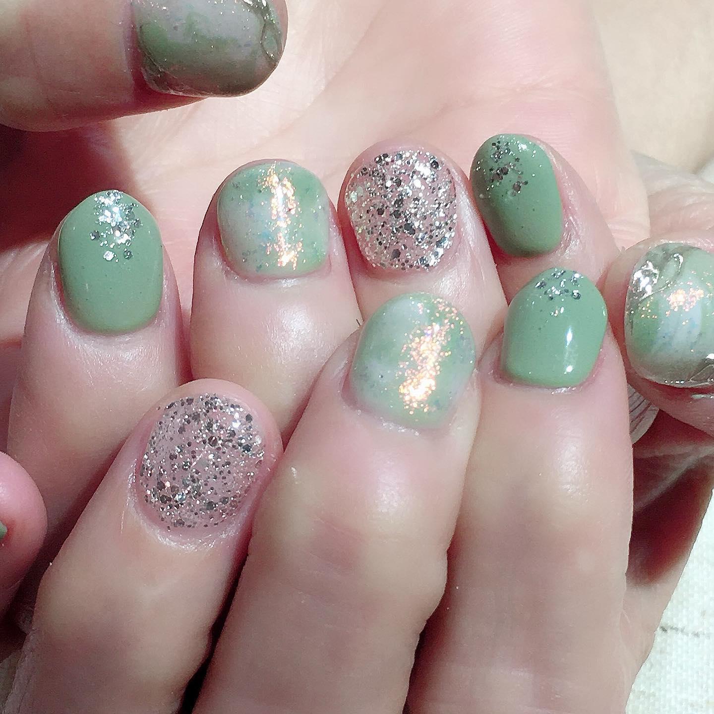 グリーンカラーネイル💅🏻桜新町ネイルサロンpeep-PEEP