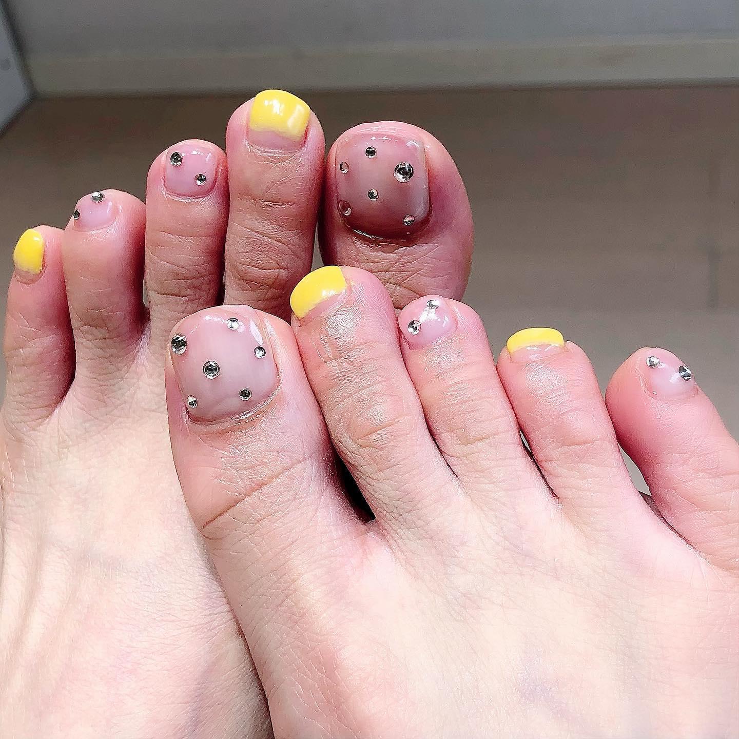 【春夏おすすめフットネイル】イエロー×クリアネイル🦶🏻桜新町ネイルサロンpeep-PEEP