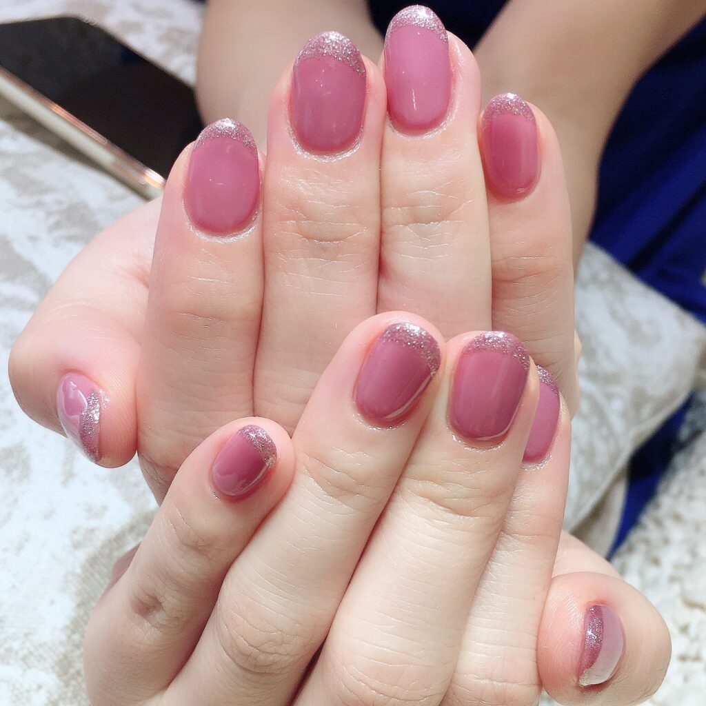 くすみピンクにラメピンクのシンプル女子力ネイル☆