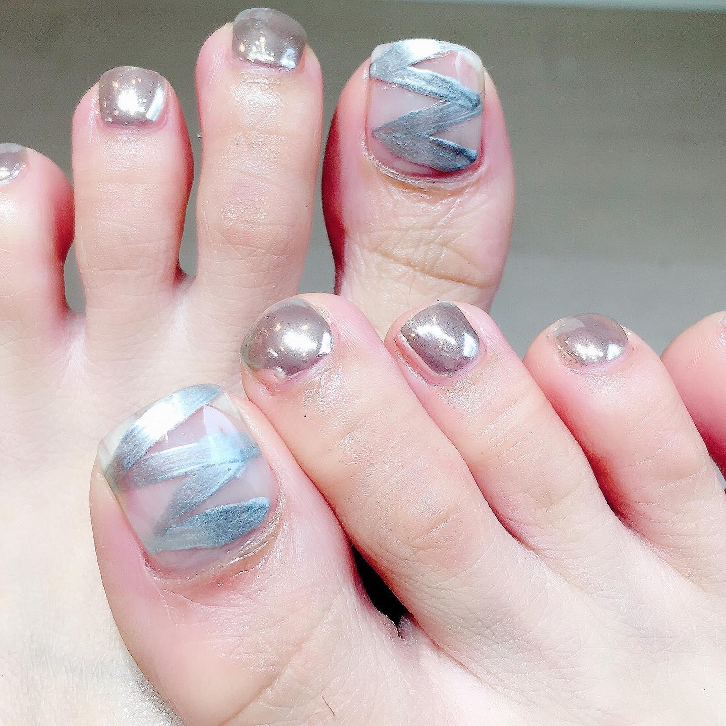 【春夏おすすめフットネイル】モード系シルバーネイル💅桜新町ネイルサロンpeep-PEEP