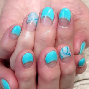 【指先から季節を感じて】スカイブルー大理石風ネイル💅🏻桜新町ネイルサロンpeep-PEEP