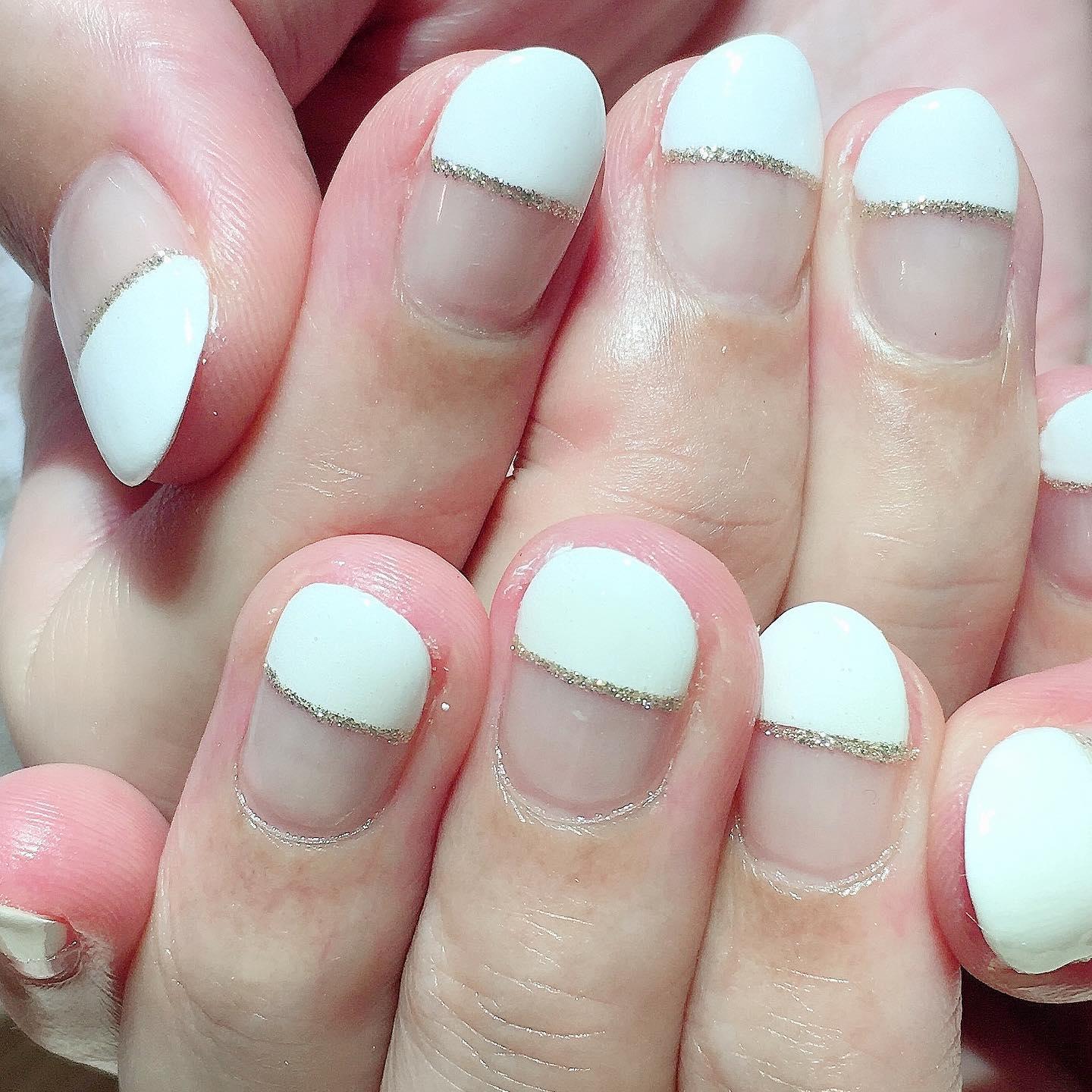 【シンプルネイルでオフィスにも◎】スキニーラメフレンチ💅🏻桜新町ネイルサロンpeep-PEEP
