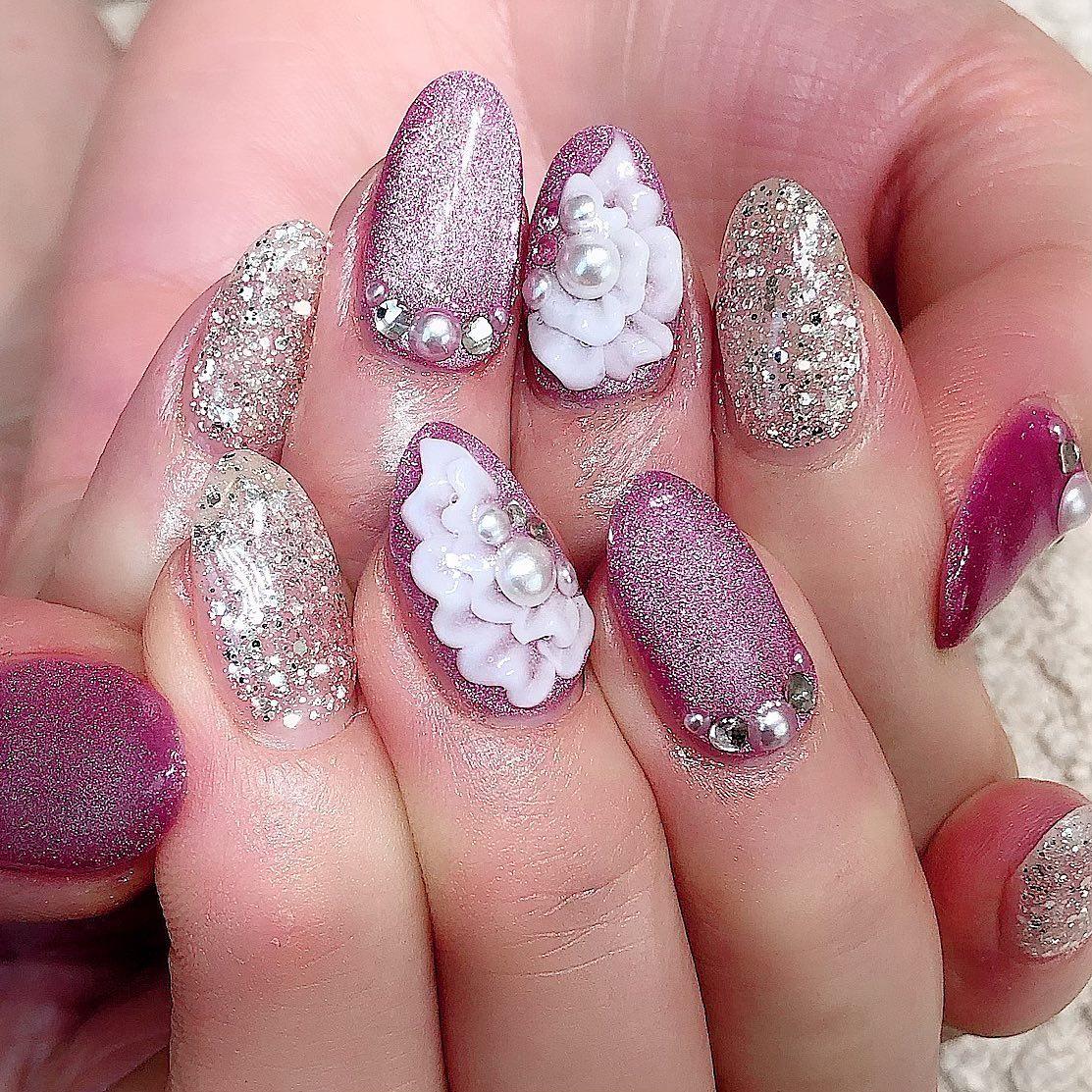 【当店の人気デザイン】3Dフラワーブライドネイル💅🏻桜新町ネイルサロンpeep-PEEP