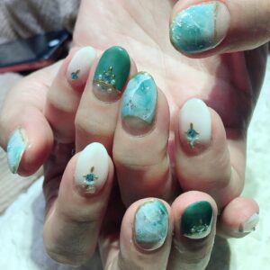 【指先から季節を感じて】ターコイズ大理石フレンチ💅桜新町ネイルサロンpeep-PEEP