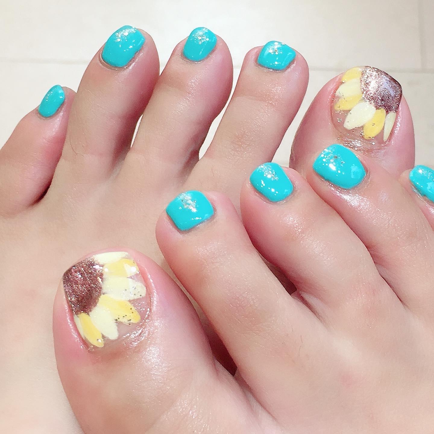 【夏おすすめフットネイル】sunflowerフットネイル💅桜新町ネイルサロンpeep-PEEP