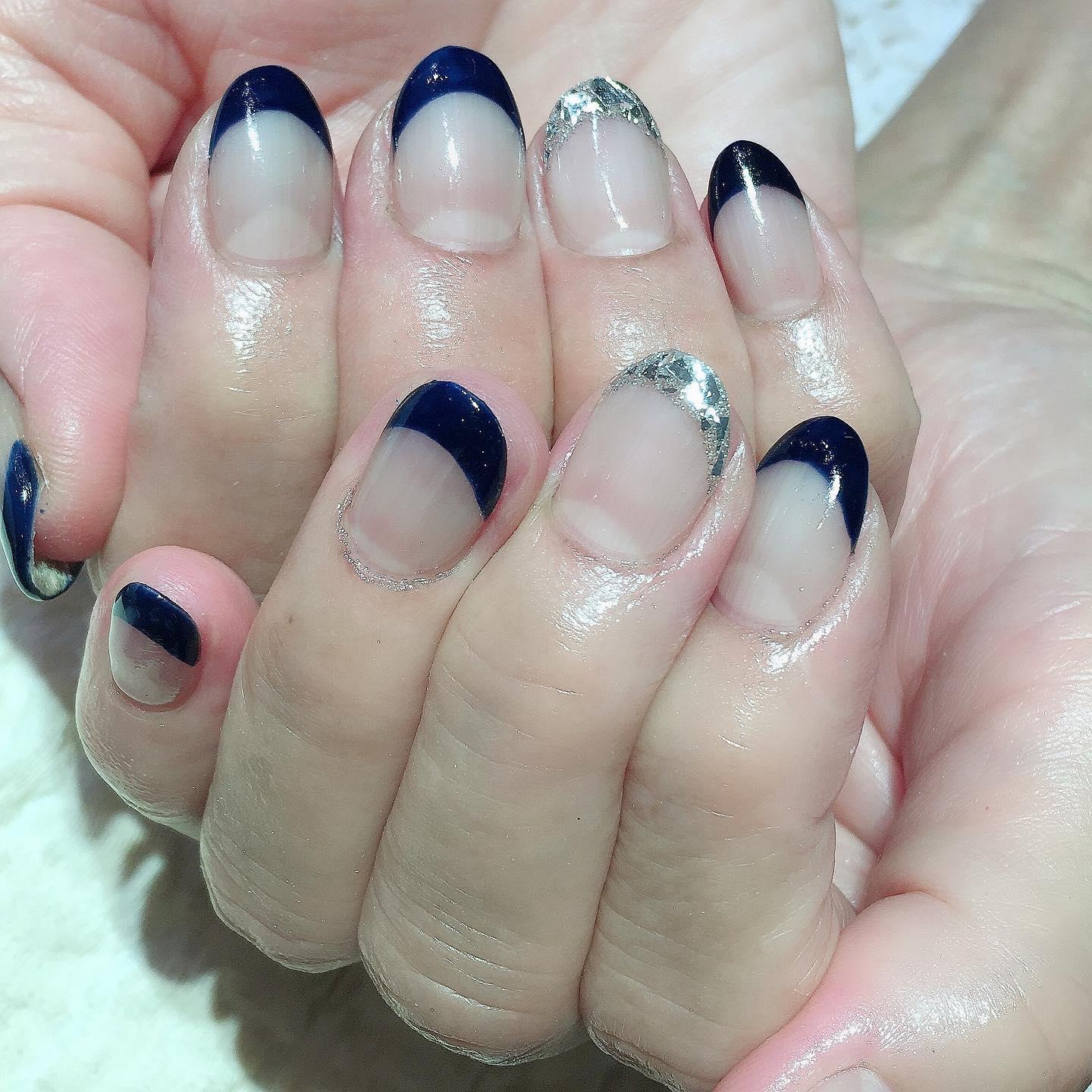 【シンプルアートでオフィスにも◎】ワンポイントガラスフレンチ💅桜新町ネイルサロンpeep-PEEP