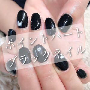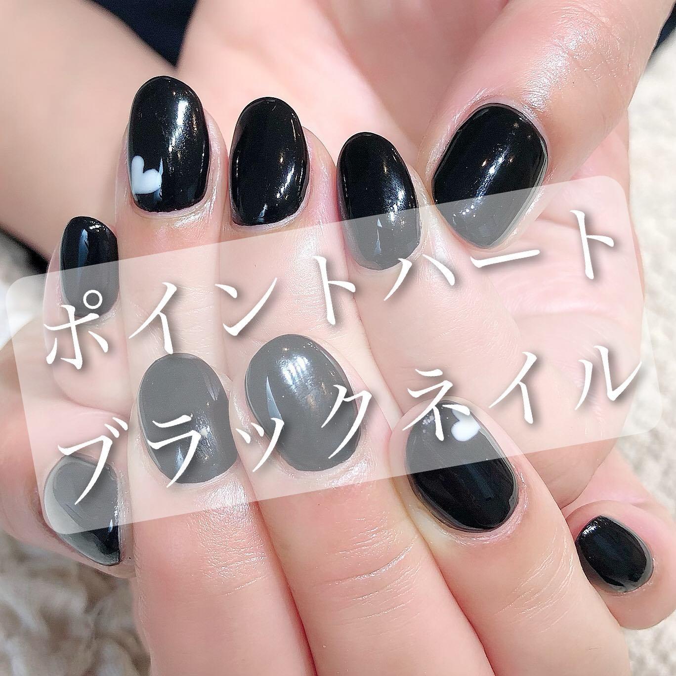 【シンプルお洒落】ポイントハートブラックネイル💅🏻桜新町ネイルサロンpeep-PEEP
