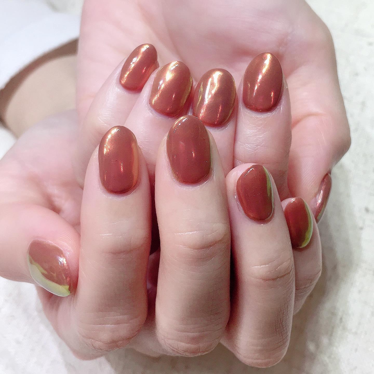 【指先から季節を感じて】ブラウンミラーネイル💅桜新町ネイルサロンpeep-PEEP
