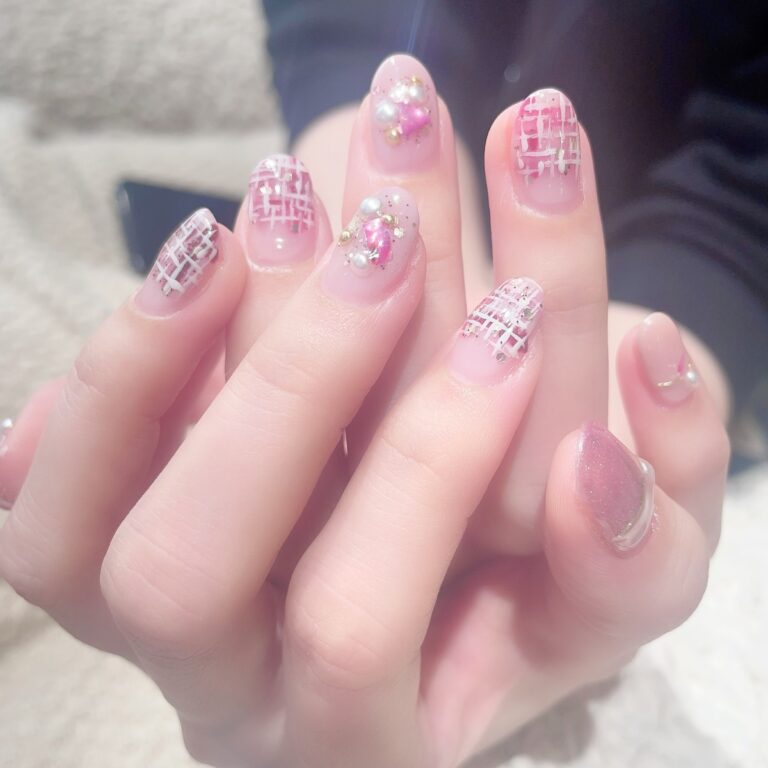 色合いが可愛いツイードネイル(^^)