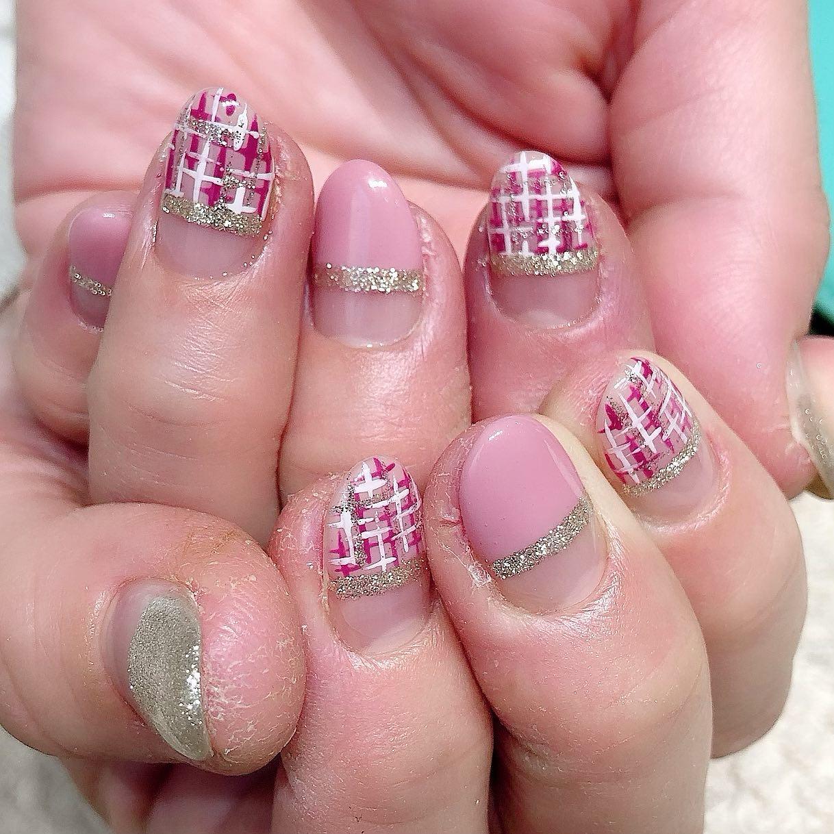 【指先から季節を感じて】ピンクツイードネイル💅🏻桜新町ネイルサロンpeep-PEEP