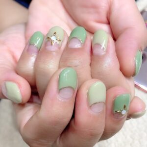 【シンプルアートでオフィスにも◎】グリーンツートンネイル💅🏻桜新町ネイルサロンpeep-PEEP