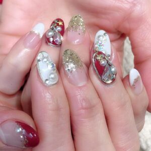 【大切なイベントに】クリスマスビジューネイル💅🏻桜新町ネイルサロンpeep-PEEP