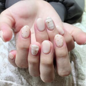 【当店の人気デザイン】上品なベージュチェックネイル💅桜新町ネイルサロンpeep-PEEP