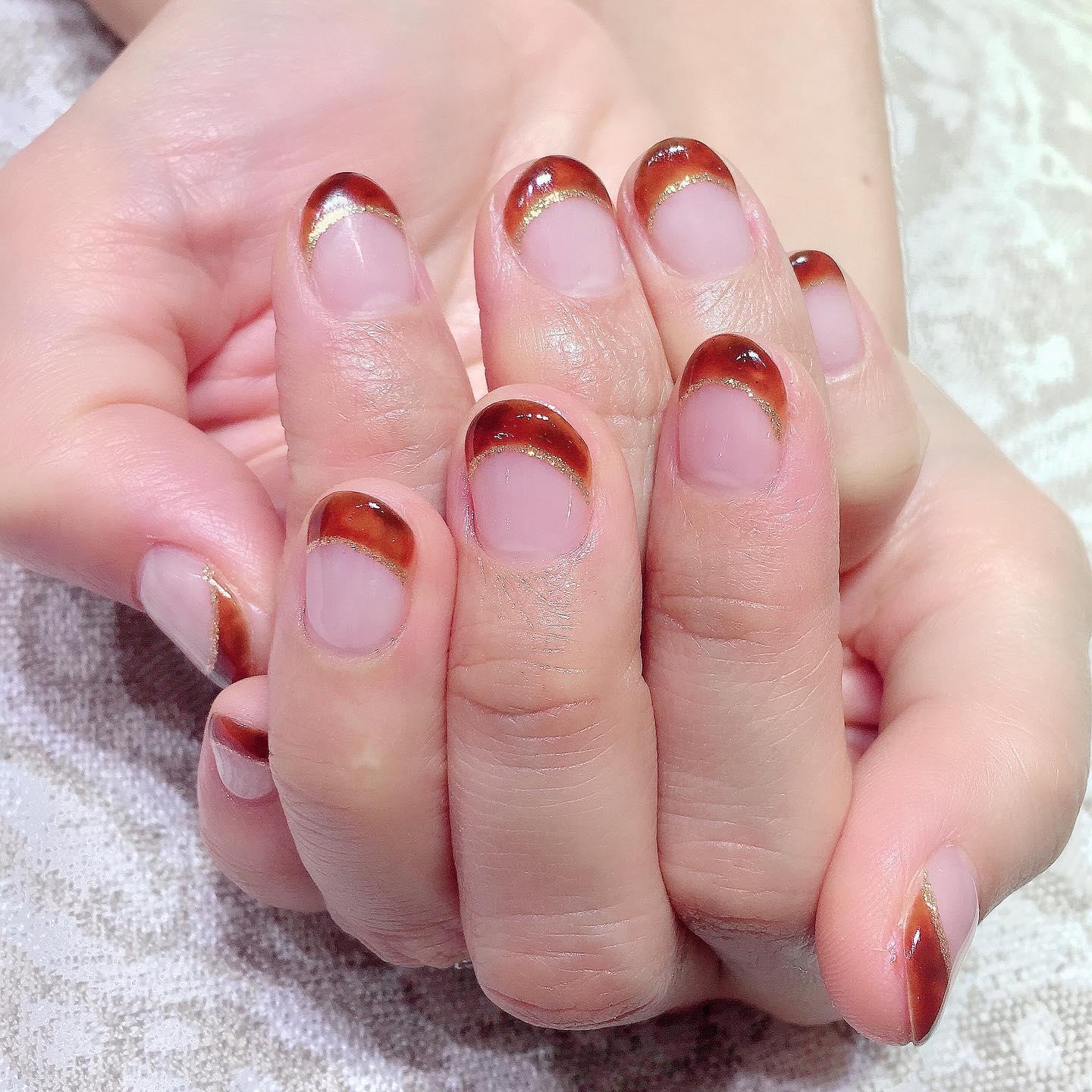 【秋おすすめデザイン】べっこうフレンチ💅桜新町ネイルサロンpeep-PEEP