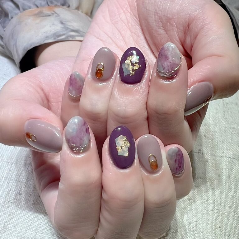 落ち着いたパープル系カラーで
