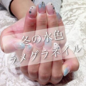 【指先から季節を感じて】冬の水色ラメグラデネイル💅桜新町ネイルサロンpeep-PEEP