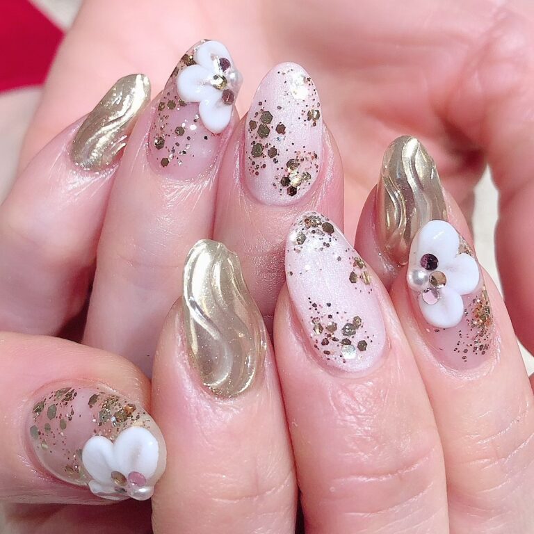 新春ネイルの中でも人気なフラワーデザイン