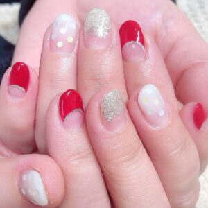 【シンプルお洒落なネイル】ドット×フレンチネイル💅🏻桜新町ネイルサロンpeep-PEEP