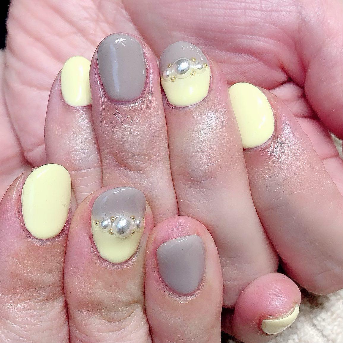 【シンプルネイルでオフィスにも◎】グレージュ×イエローネイル💅🏻桜新町ネイルサロンpeep-PEEP