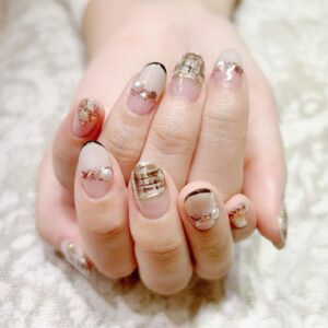 【当店の人気デザイン】ベージュツイードネイル💅桜新町ネイルサロンpeep-PEEP