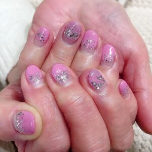 【シンプルネイルでオフィスにも◎】ラメ乗せハーフフレンチ💅🏻桜新町ネイルサロンpeep-PEEP