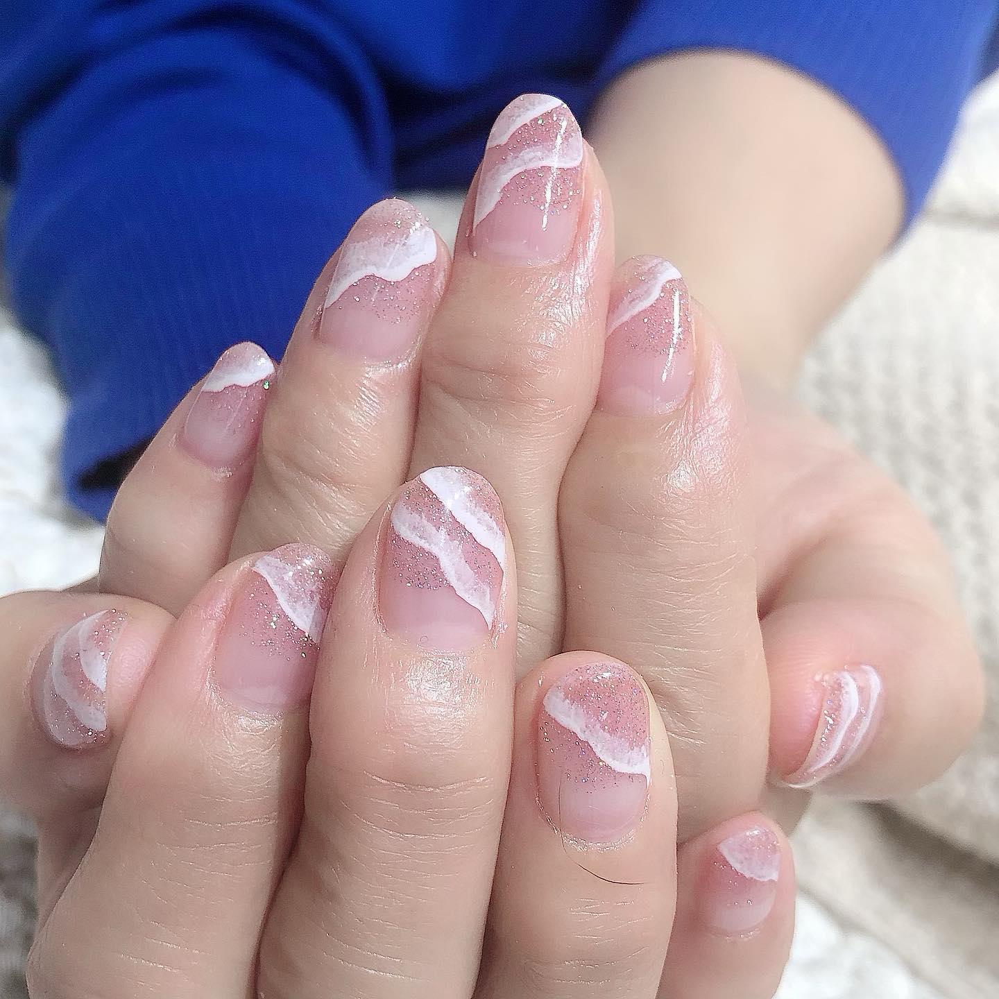 【シンプルネイルでオフィスにも◎】フラッシュウェーブネイル💅🏻桜新町ネイルサロンpeep-PEEP