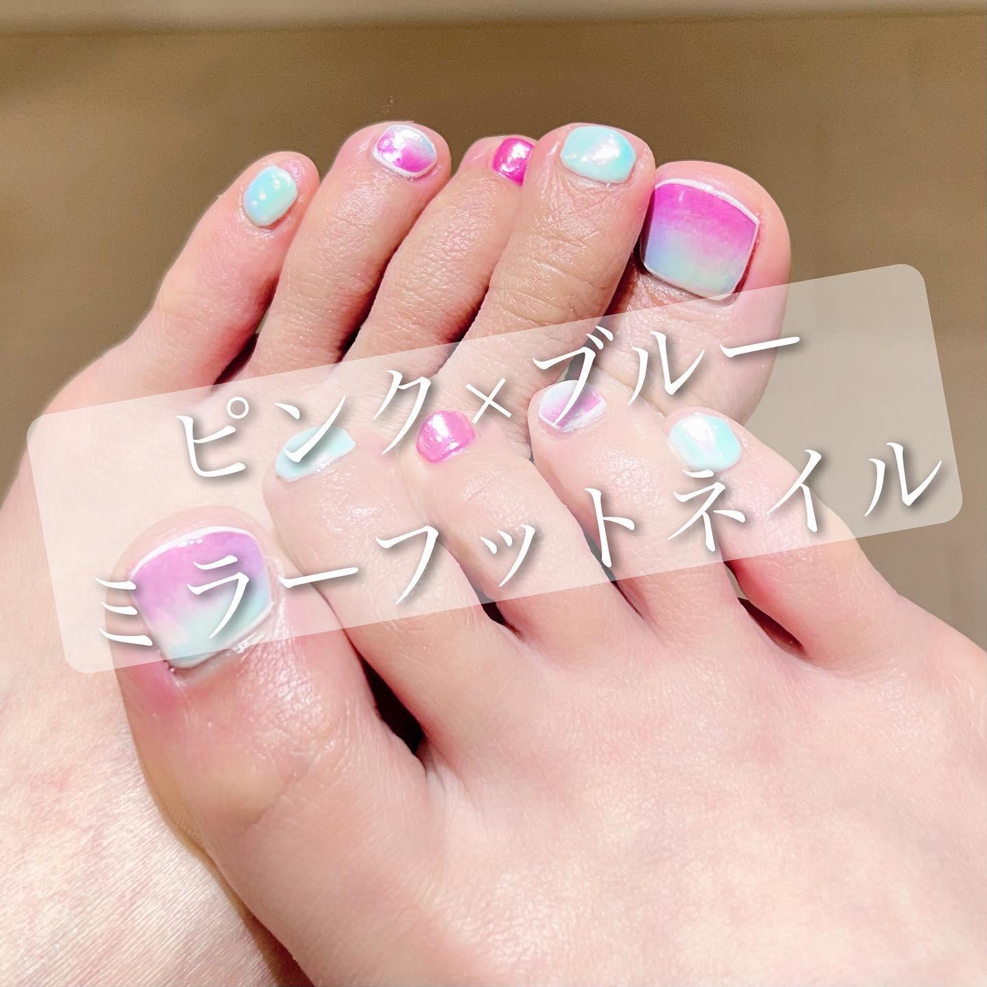【春おすすめフット】バイカラーミラーフットネイル💅桜新町ネイルサロンpeep-PEEP