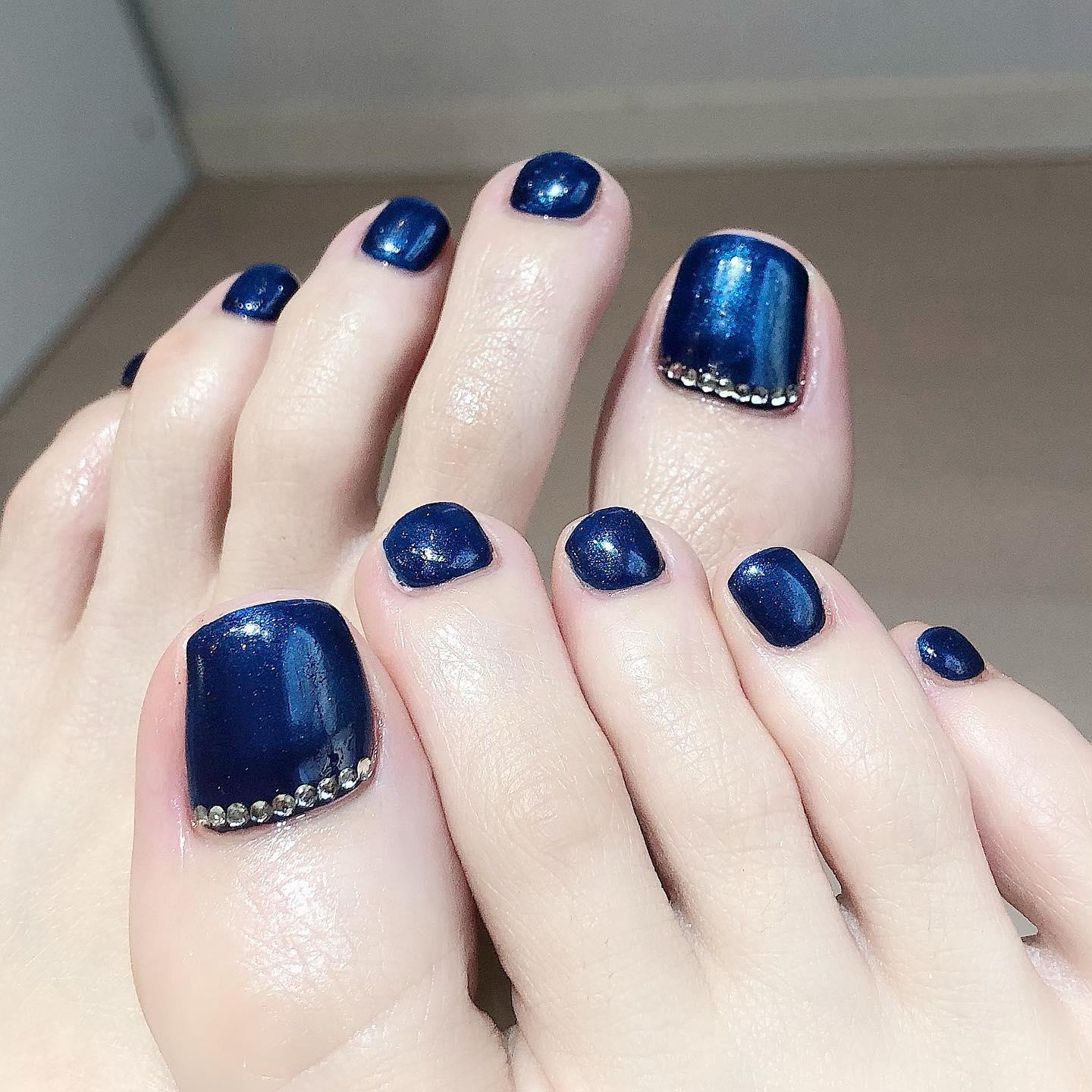 【シンプルフット】ネイビー×ストーンネイル🦶🏻桜新町ネイルサロンpeep-PEEP