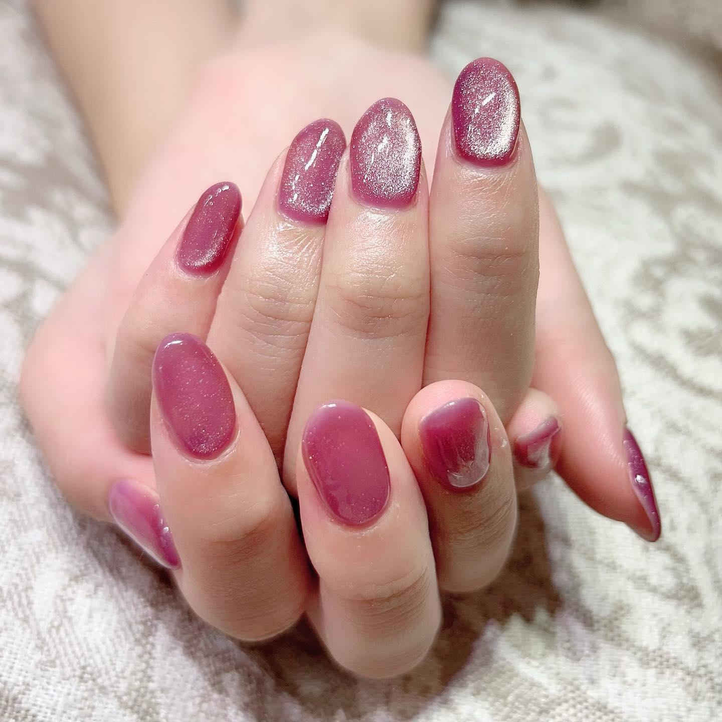 【春おすすめネイル】パープル×シアーブラウンビー玉マグネットネイル💅桜新町ネイルサロンpeep-PEEP