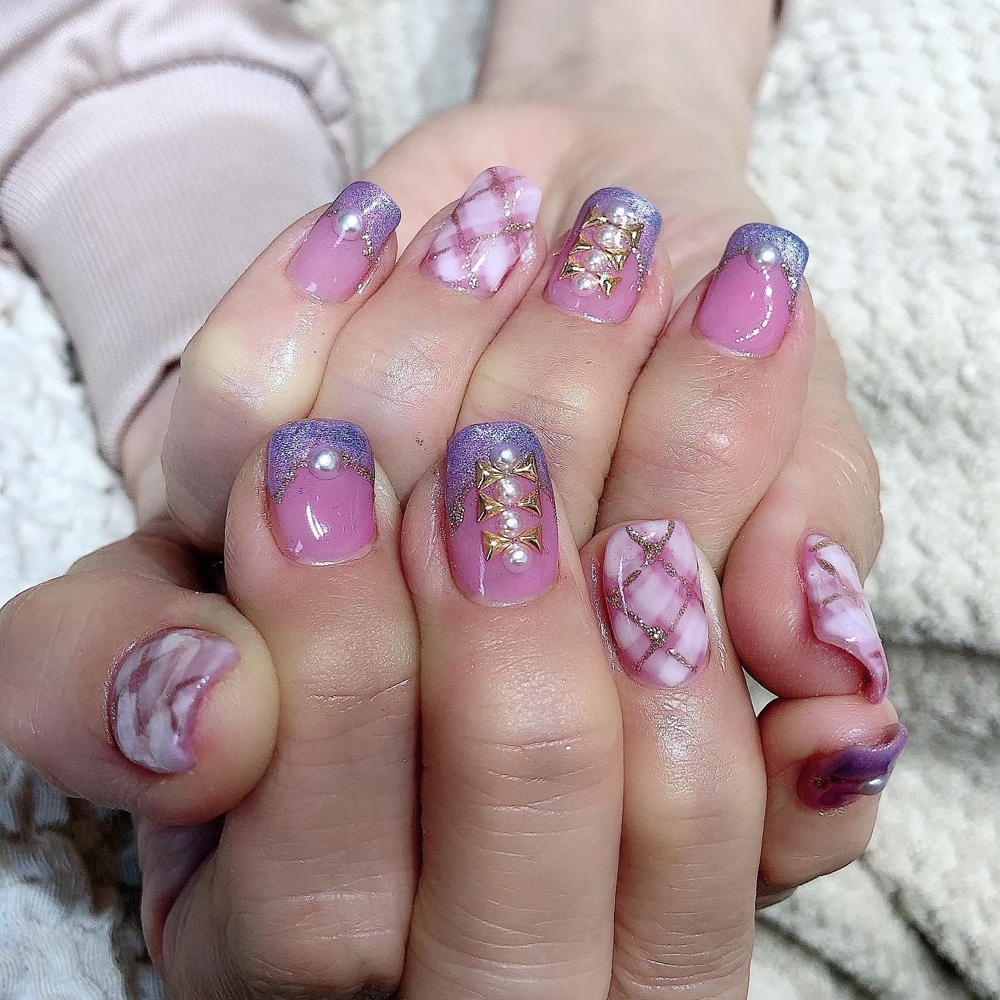 【大切なイベントに】ピンクチェックネイル💅🏻桜新町ネイルサロンpeep-PEEP