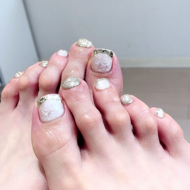 シルクのようなパールカラーに華やかなガラスフレンチで上品セレブフットに変身!