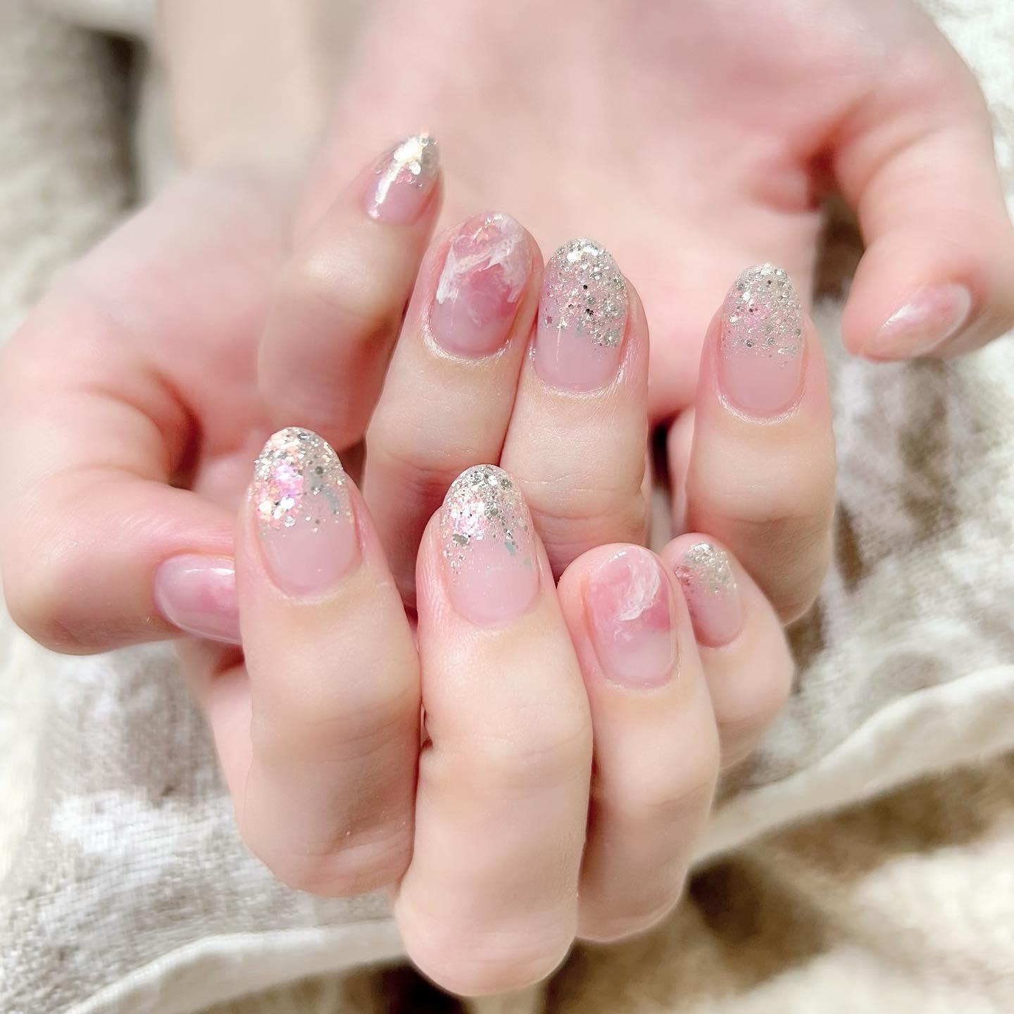 【シンプルアートでオフィスにも◎】ピンクマーブルネイル💅桜新町ネイルサロンpeep-PEEP