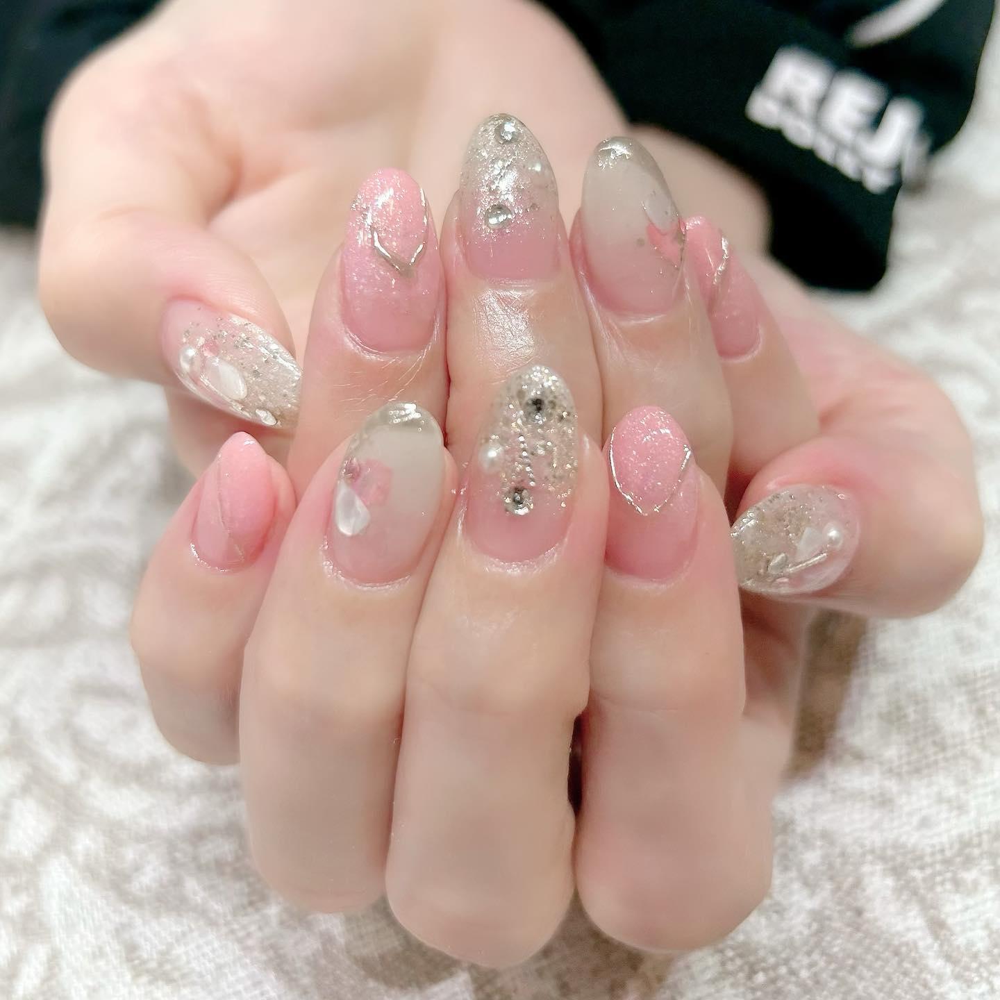 【当店の人気デザイン】ピンク×シルバービー玉マグネット💅桜新町ネイルサロンpeep-PEEP