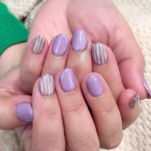 【シンプルネイルでオフィスにも◎】ゴールド×ホワイトストライプネイル💅🏻桜新町ネイルサロンpeep-PEEP