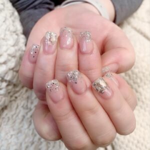 【シンプルネイルでオフィスにも◎】ラメグラポイントシェルネイル💅🏻桜新町ネイルサロンpeep-PEEP