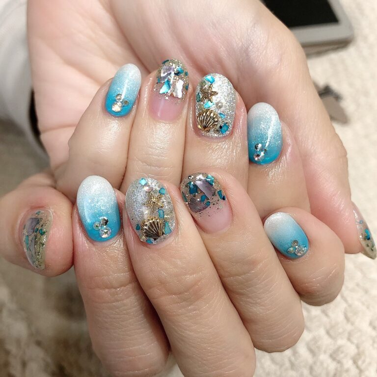 海っぽくしたい!ということで先取りサマーなネイルです!