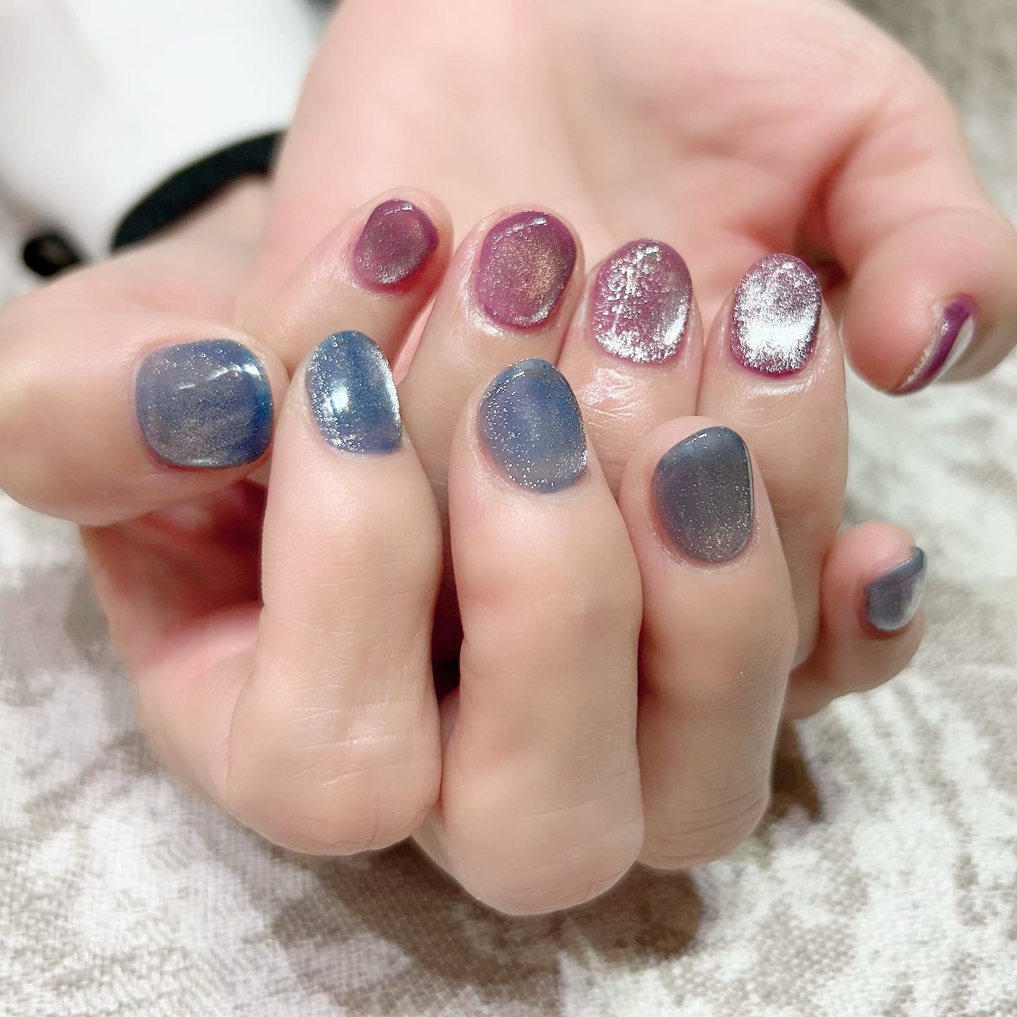 【当店の人気デザイン】ビー玉2色マグネットネイル💅桜新町ネイルサロンpeep-PEEP