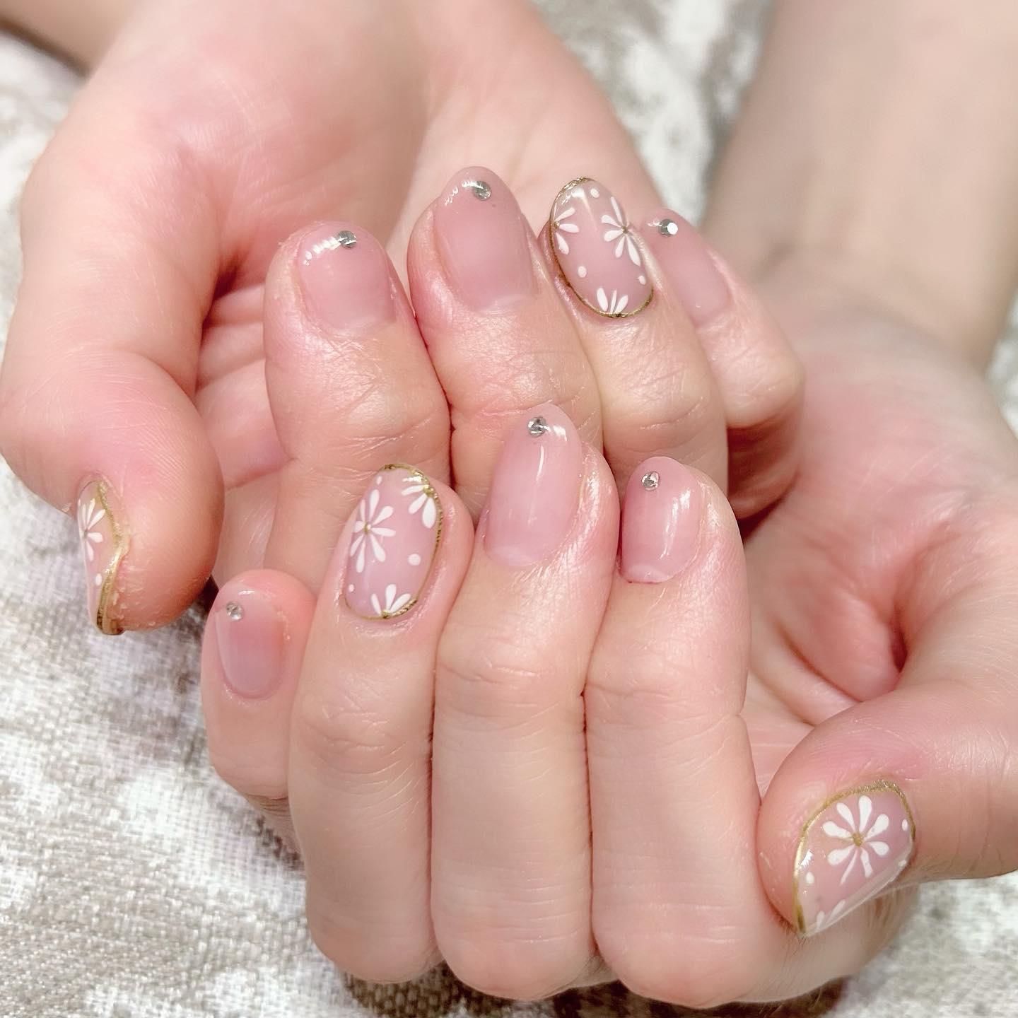 【シンプルアートでオフィスにも◎】ベージュフラワーネイル💅桜新町ネイルサロンpeep-PEEP