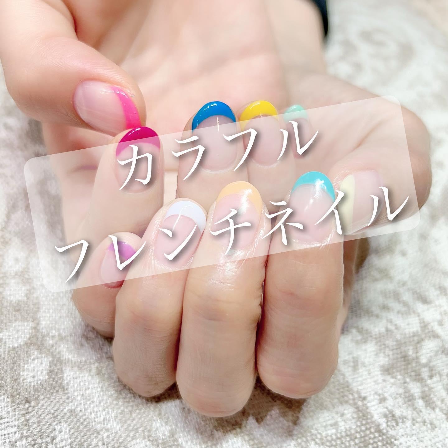 【シンプル好きおすすめ】カラフルフレンチネイル💅桜新町ネイルサロンpeep-PEEP