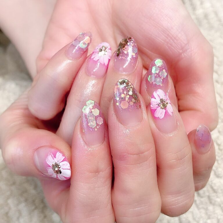 ピンクで華やかなツツジネイルはいかがですか?^^