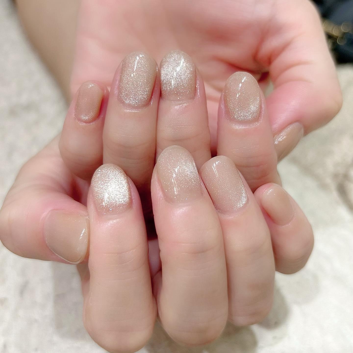 【当店の人気デザイン】ベージュ×シアーブラウンビー玉マグネットネイル💅桜新町ネイルサロンpeep-PEEP