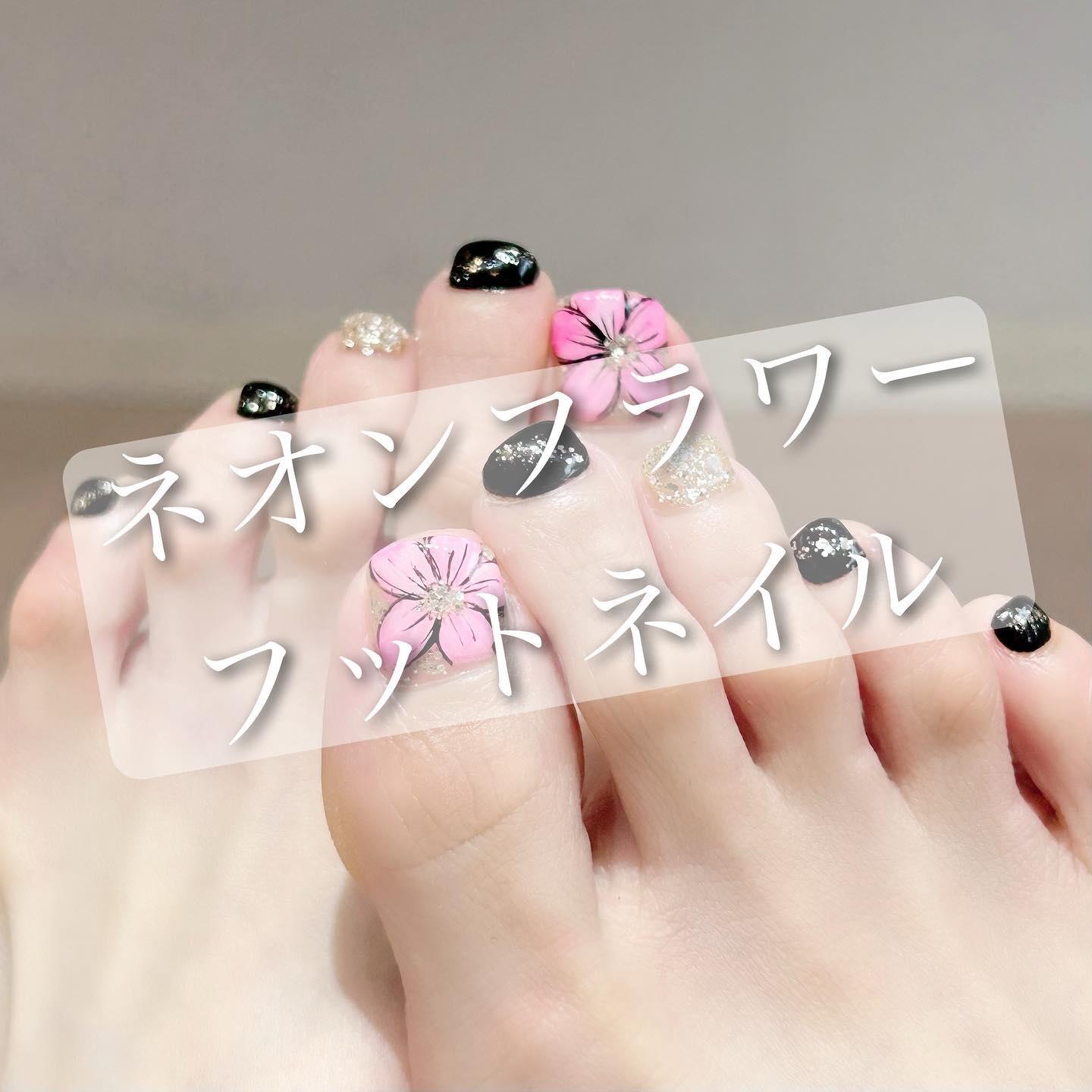 【春夏おすすめフットネイル】ネオンピンクフラワーフット💅桜新町ネイルサロンpeep-PEEP