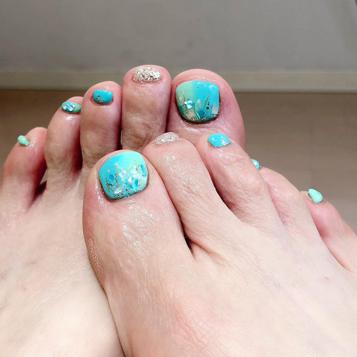 【夏おすすめフットネイル】人魚の鱗ネイル🦶🏻桜新町ネイルサロンpeep-PEEP