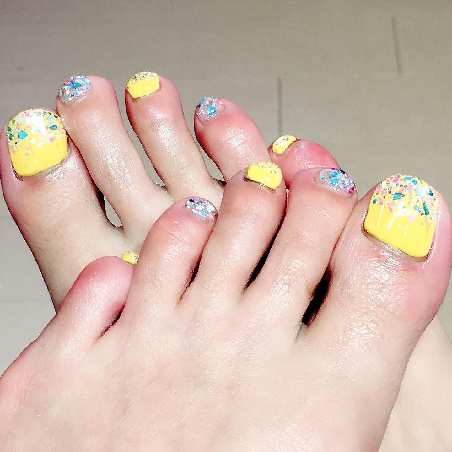 【春夏おすすめフットネイル】元気がでるイエローpopネイル💅桜新町ネイルサロンpeep-PEEP