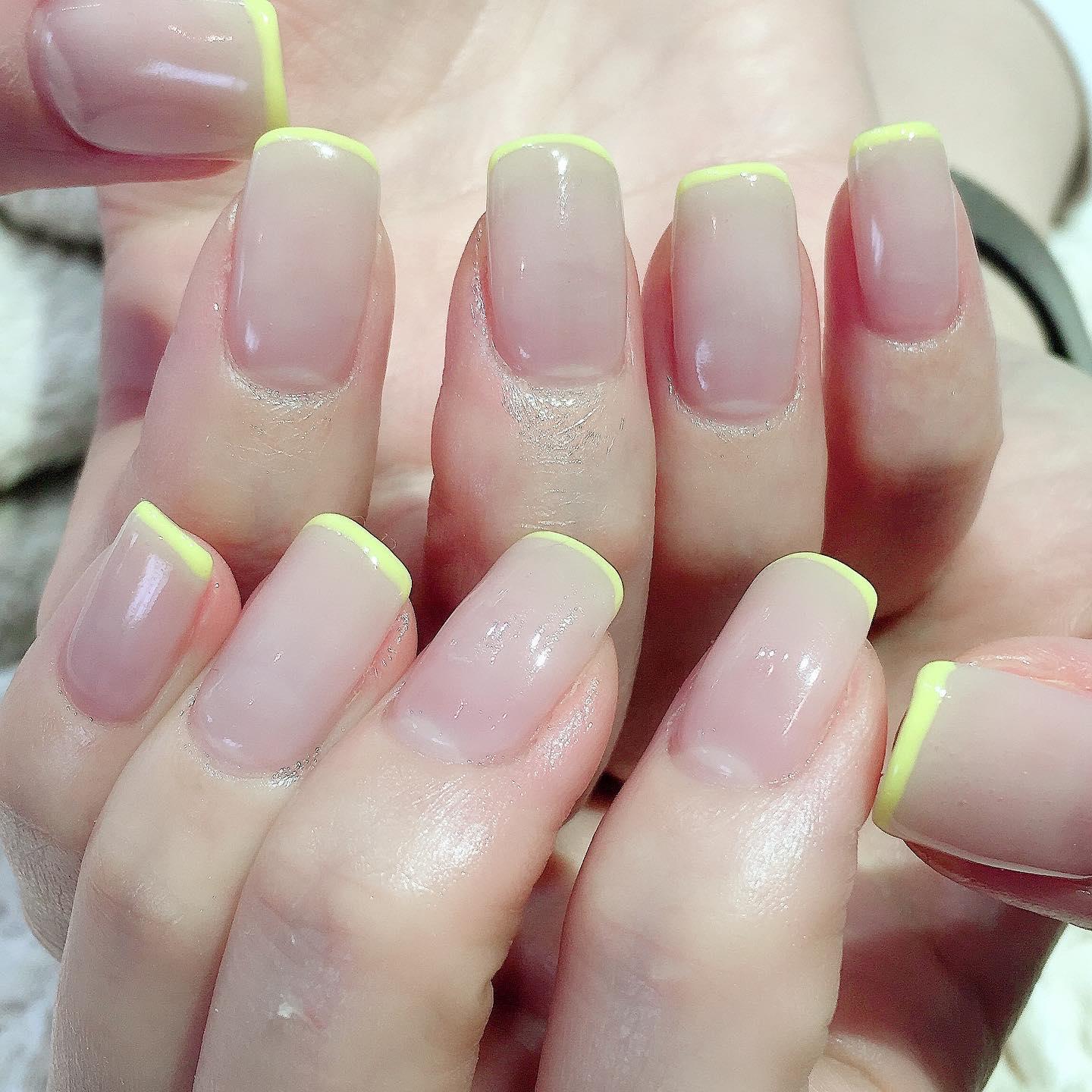 【シンプルアートでオフィスにも◎】ネオンスキニーフレンチネイル💅桜新町ネイルサロンpeep-PEEP