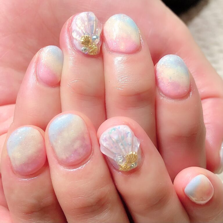 ふんわりカラフル&ぷくぷくシェルが可愛いマーメイドネイルは